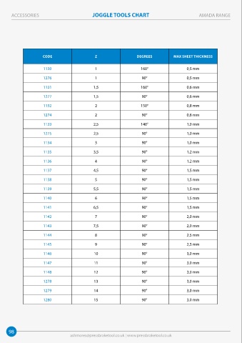 ACCESSORIES JOGGLE TOOLS CHART AMADA RANGE AMADA RANGE JOGGLE TOOLS 160° /150° / 140° ACCESSORIES